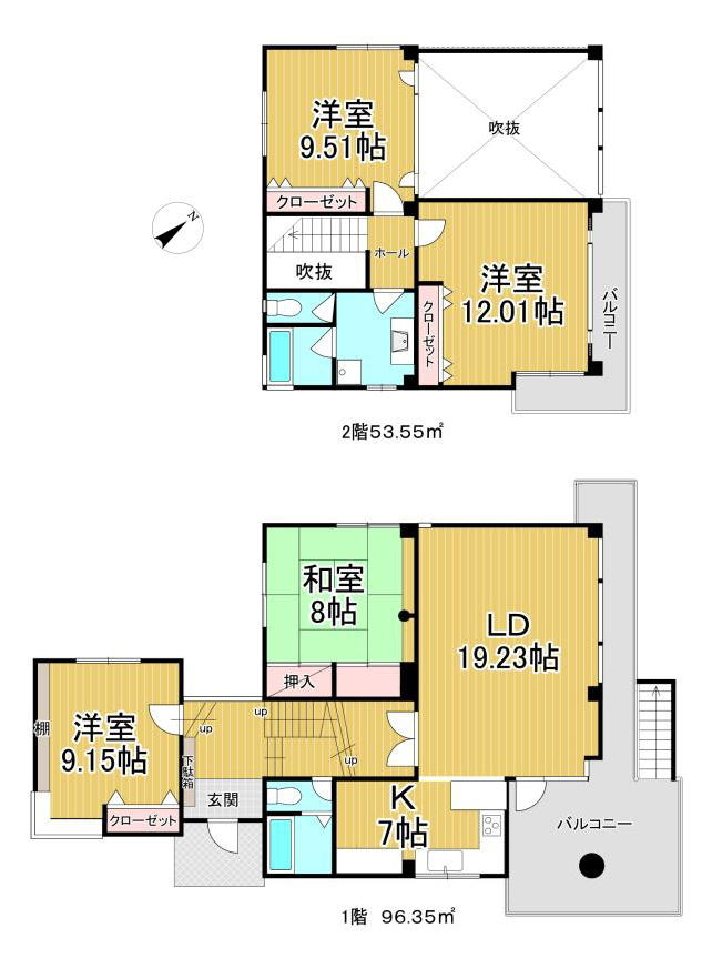 4LDKの間取りは、開放感あふれるLDKの吹抜けをはじめ、ゆとりある設計が魅力。駐車スペースは3?4台分を確保し、玄関までほぼ平坦で、日々の生活の快適さも兼ね備えています。南道路に面した高台立地のため、陽光と美しい眺望を存分に享受できる理想の住まいです。