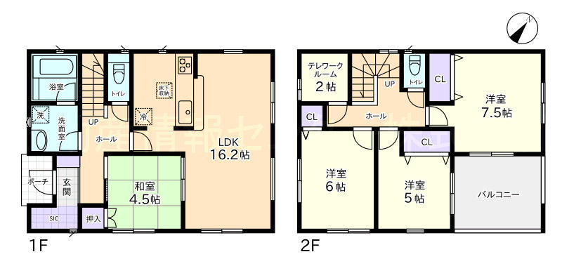 | 特色 | 公営水道、公共下水、プロパン、床下収納、システムキッチン(浄水器一体型水栓)、駐車場、駐車場3台以上可、納戸/サービスルーム/フリールーム、全居室南向き、シャワードレッサー、浴室乾燥機、セミオートバス、シャワートイレ1F/2F、人感センサー付玄関灯、TVモニター付インターホン、ピッキング対策付玄関ドア、ペアガラス、24時間換気、南道路、日当たり良好、フラット35S、制震装置、住宅性能評価取得 |