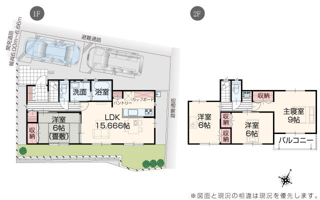 敷地面積はゆとりの40.66坪、間取りは4LDK。駐車スペースは2台分確保しており、ご家族で複数台所有されている方にも安心です。