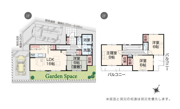 敷地面積はゆとりの41.44坪、間取りは4LDK。駐車スペースは2台分確保しており、ご家族で複数台所有されている方にも安心です。