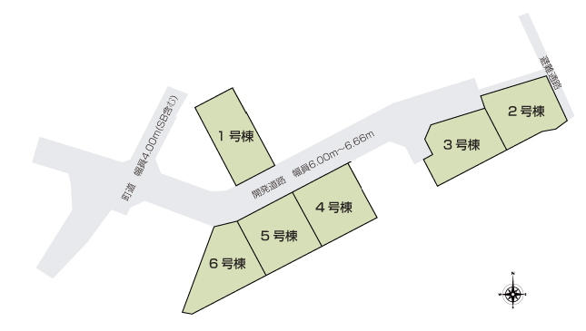 | 接道 | 北 6m(幅員) 西 4m(幅員) |