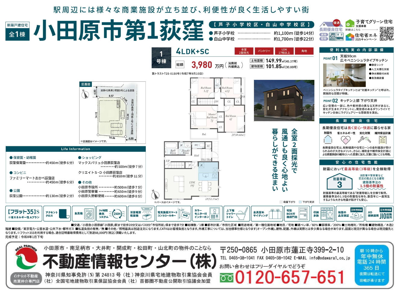 小田原市荻窪 新築一戸建てです。小田原駅周辺には多彩な商業施設が揃い、買い物や外食にも便利な立地。毎日の暮らしが快適で、子育て世代からシニア層まで幅広く暮らしやすいエリアです。