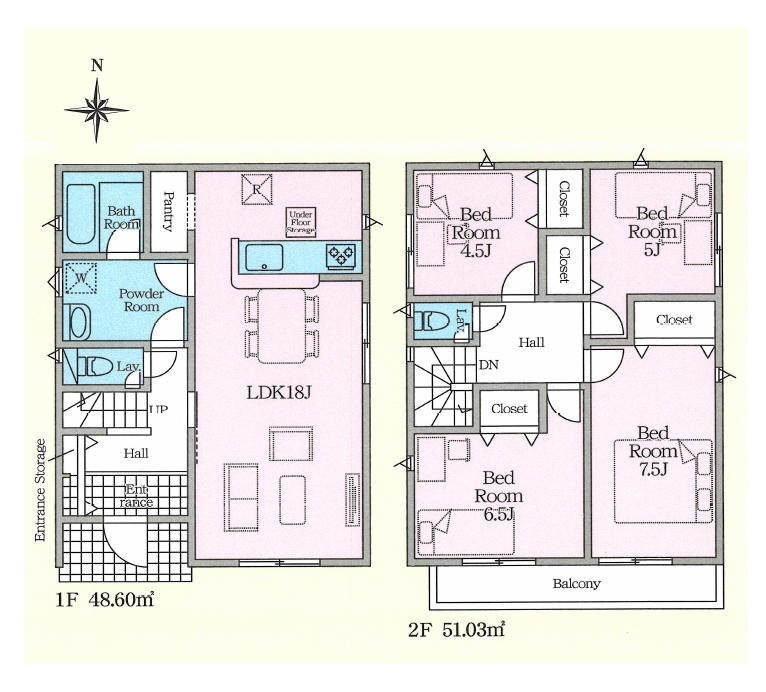 特色 | 公営水道、東京電力、プロパン、駐車場、駐車場3台以上可、対面キッチン、システムキッチン(浄水器一体型水栓)、床下収納、パントリー、シャワードレッサー、浴室乾燥機、1坪バス、オートバス、シャワートイレ1F/2F、人感センサー付玄関灯、TVモニター付インターホン、ピッキング対策付玄関ドア、複層ガラス、階段手摺、24時間換気、角地、南東角地、制震装置、住宅性能評価取得 |