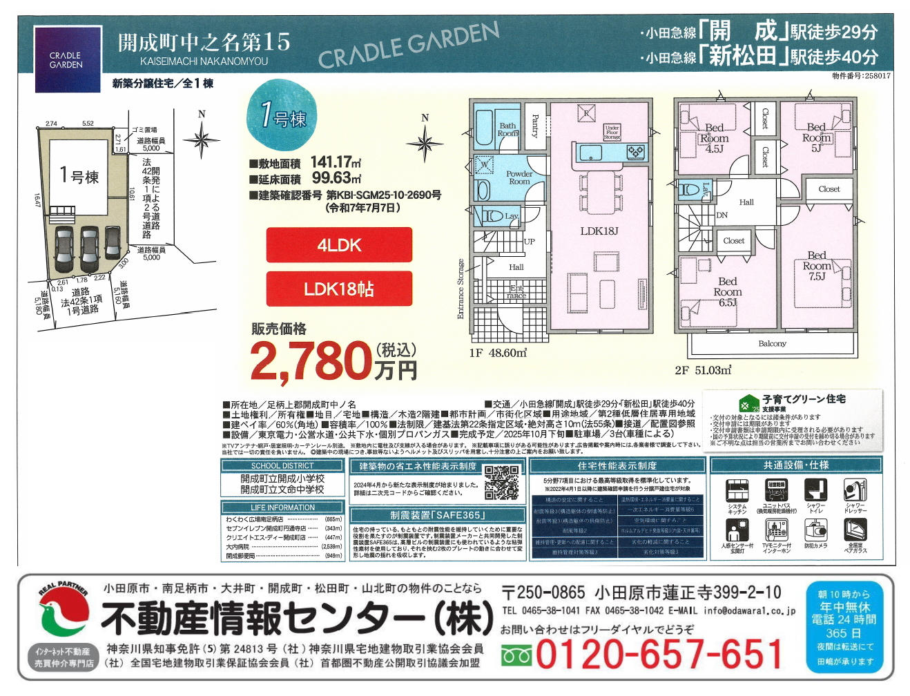 足柄上郡開成町中之名に誕生した新築一戸建ては、子育て世代にぴったりの住まいです。間取りは使い勝手の良い4LDK。18帖のゆったりとしたLDKは、ご家族が自然と集まる心地よい空間となっており、家族団らんの時間をゆったりと過ごすことができます。