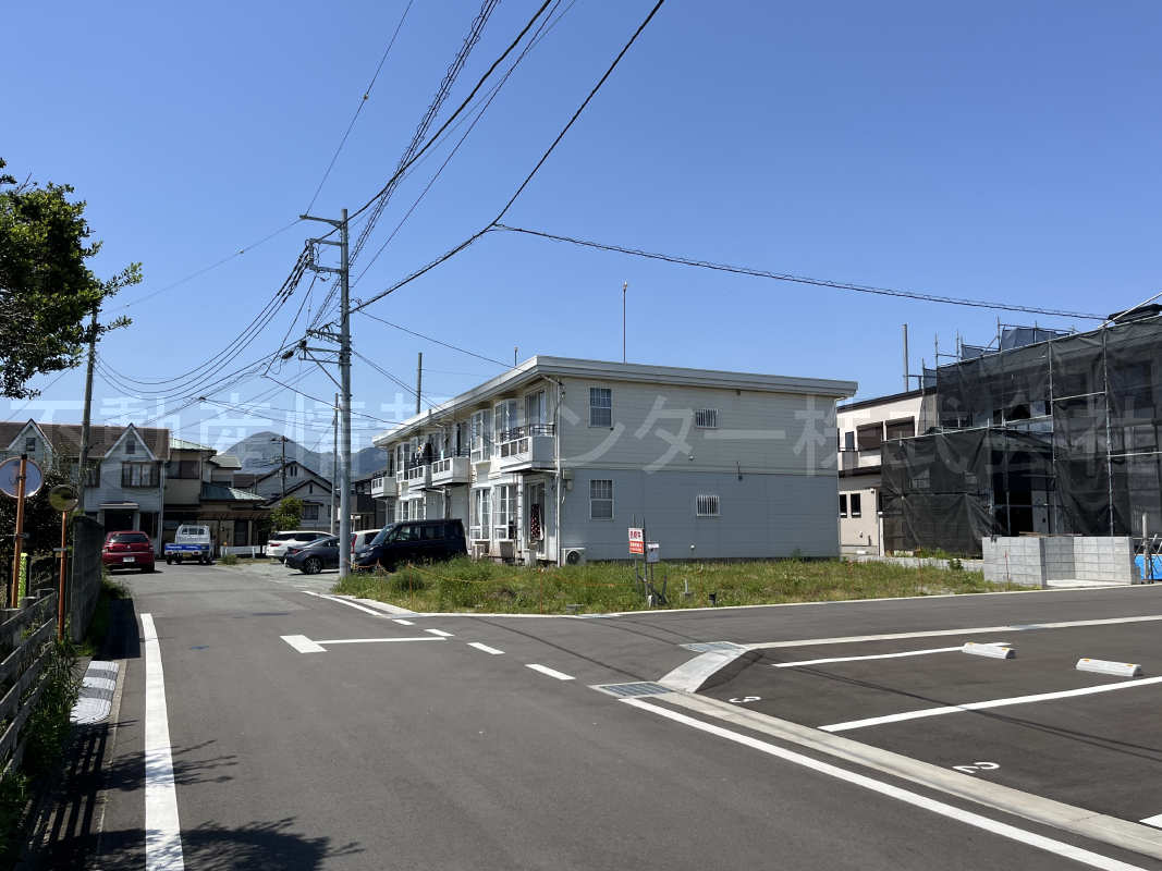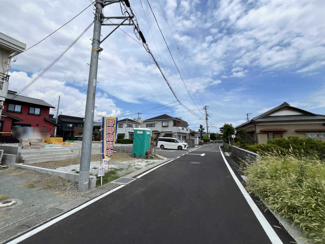 南東角地に位置しているため、日当たりや風通しも良好。道路幅は5m以上あり、車の出し入れもスムーズです。並列で3台まで駐車可能なので、来客時やご夫婦でそれぞれお車をお持ちの場合も安心です。