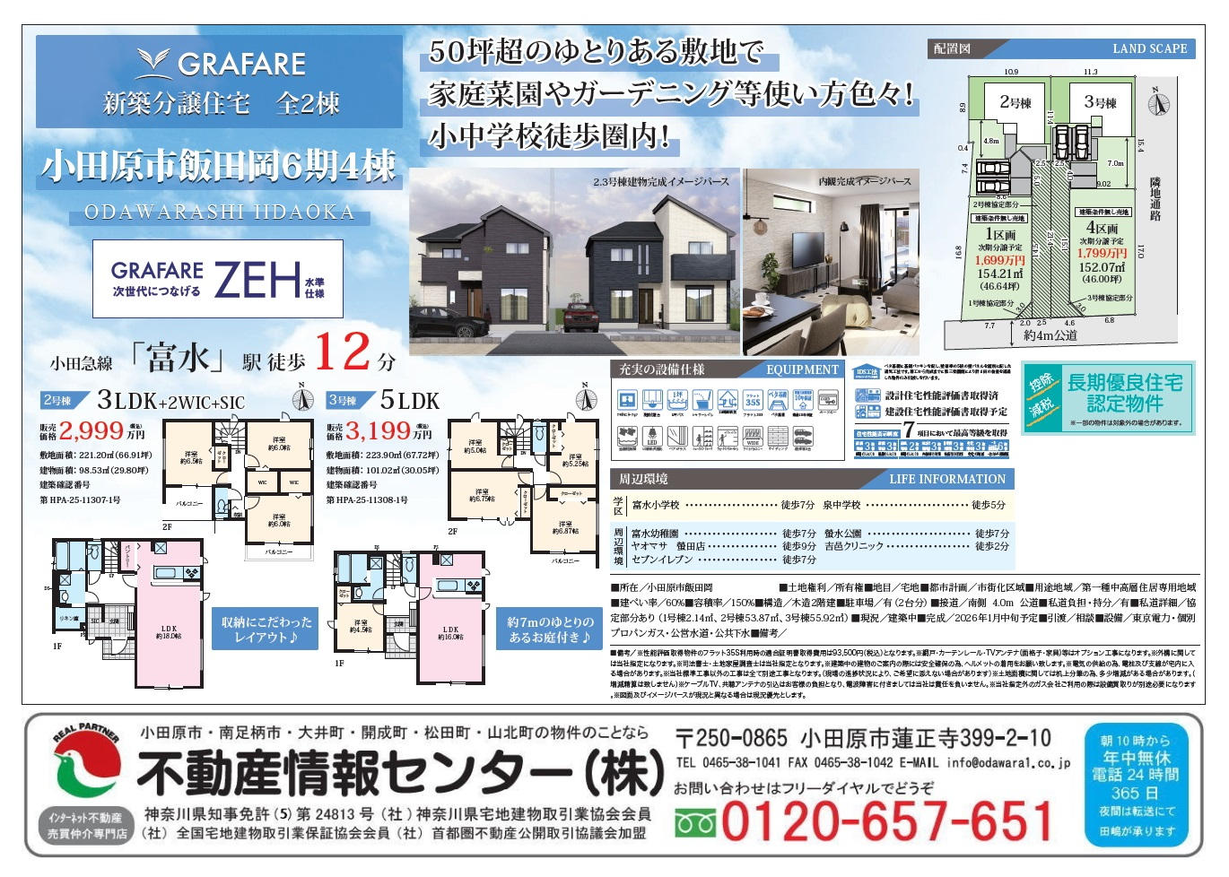小田原市飯田岡に位置する本物件は、大雄山線「飯田岡」駅から徒歩10分、小田急線「富水」駅へも徒歩11分と、2路線が利用可能な便利な立地にあります。通勤や通学にもアクセスが良く、生活利便性の高いエリアです。