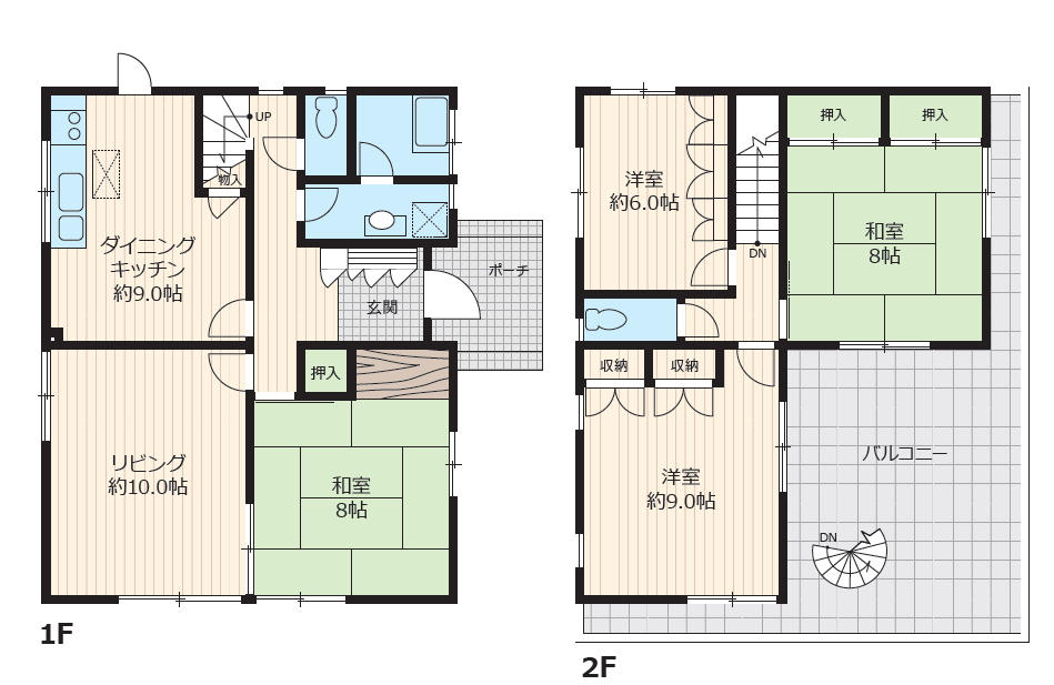 床材・クロス・キッチン・ユニットバス・洗面台・トイレ・給湯器・建具・インターホン交換、屋根・外装塗装、ハウスクリーニング、防蟻処理(5年保証)、駐車スペース2台分確保(車種制限あり)