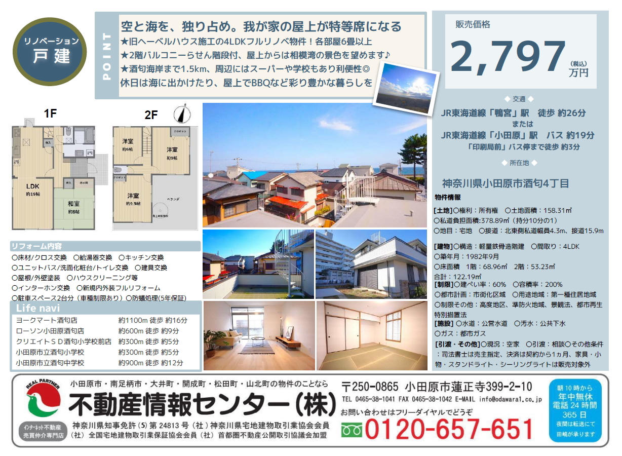 小田急線 小田原駅まで バス19分 停歩3分 JR東海道線 小田原駅まで バス19分 停歩3分 |