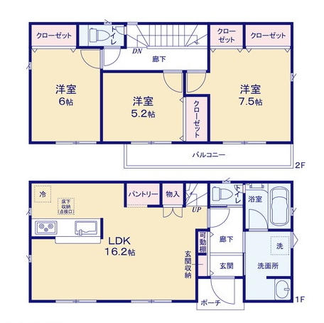 特色 | 制震装置、準防火、住宅性能評価取得、公営水道、公共下水、東京電力、プロパン、駐車場、角地、対面キッチン、システムキッチン(浄水器一体型水栓)、床下収納、パントリー、シャワードレッサー、浴室乾燥機、1坪バス、オートバス、シャワートイレ1F/2F、人感センサー付玄関灯、TVモニター付インターホン、ピッキング対策付玄関ドア、複層ガラス、24時間換気、全居室南向き、フラット35S |