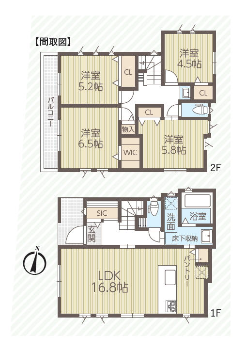 キッチンは、スタイリッシュで使い勝手の良いペニンシュラ型を採用。タッチレス水栓を備えており、衛生面にも配慮されています。収納面も充実しており、食料品などをスッキリと整理できるパントリーに加え、ウォークインクローゼット(WIC)とシューズインクローゼット(SIC)も完備。暮らしやすさを追求した間取りが魅力です。
