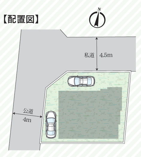 | 接道 | 北 4.5m(幅員) 私道 西 4m(幅員) 公道 |