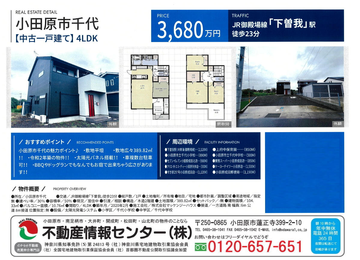 小田原市千代の2020年2月築 中古戸建てのご紹介です。ファミリーにぴったりの充実した設備と、ゆったりとした敷地が魅力の物件です。