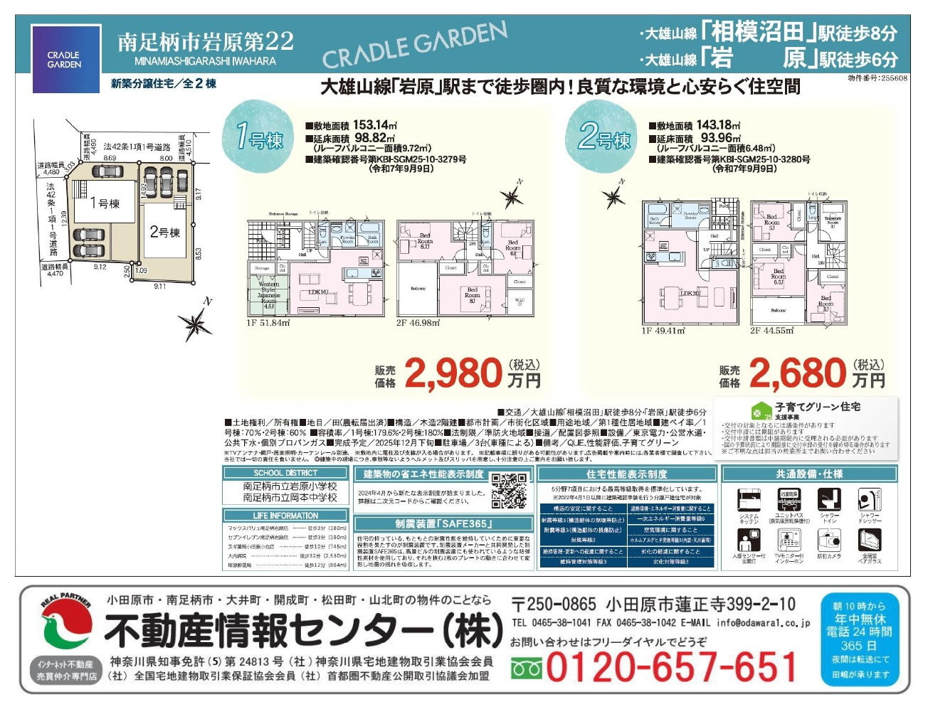 南足柄市岩原 新築一戸建て、大雄山線「岩原」駅 徒歩6分、「相模沼田」駅 徒歩8分。さらに小田急線「富水」駅も徒歩圏内(20分)で、3駅利用可能な利便性の高い立地です。