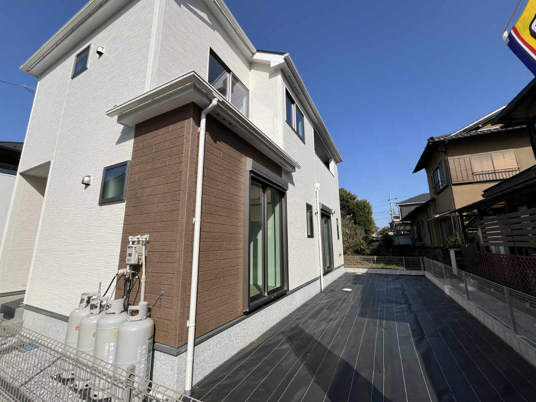 | 特色 | 防火、公営水道、公共下水、東京電力、プロパン、駐車場、対面キッチン、床下収納、システムキッチン(浄水器一体型水栓)、シャワードレッサー、浴室乾燥機、1坪バス、オートバス、シャワートイレ1F/2F、人感センサー付玄関灯、TVモニター付インターホン、ピッキング対策付玄関ドア、複層ガラス、階段手摺、24時間換気、日当たり良好、全居室南向き、フラット35S、住宅性能評価取得 |