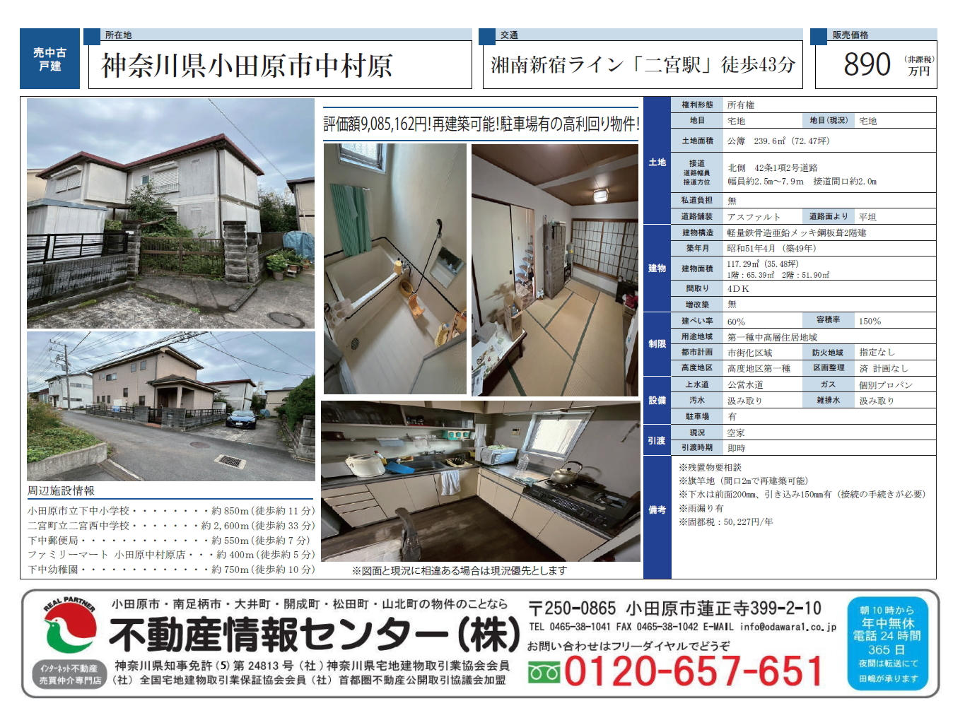 JR東海道線 二宮駅まで バス15分 停歩6分 |