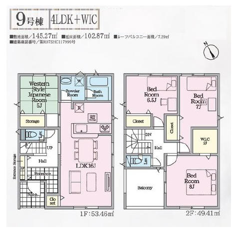 | 特色 | 公営水道、公共下水、東京電力、プロパン、駐車場、対面キッチン、システムキッチン(浄水器一体型水栓)、床下収納、シャワードレッサー、納戸/サービスルーム/フリールーム、浴室乾燥機、1坪バス、オートバス、シャワートイレ1F/2F、人感センサー付玄関灯、TVモニター付インターホン、ピッキング対策付玄関ドア、複層ガラス、階段手摺、24時間換気、フラット35S、制震装置、住宅性能評価取得 |