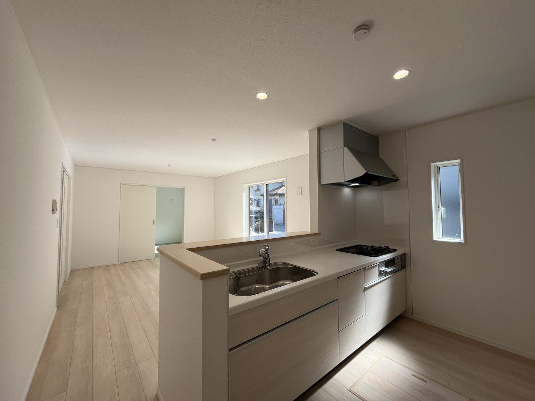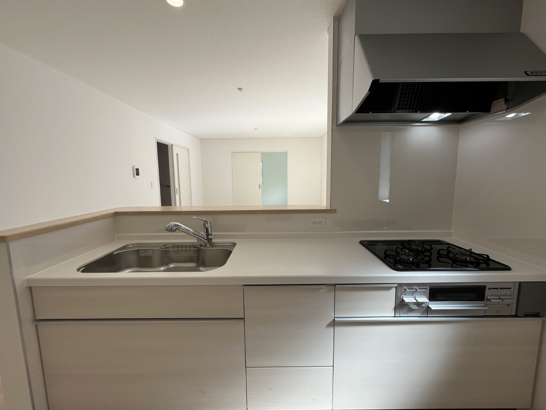 対面キッチンは、料理をしながらリビングで遊ぶお子さまの様子を見守ることができ、家族のコミュニケーションが生まれやすい設計になっています。