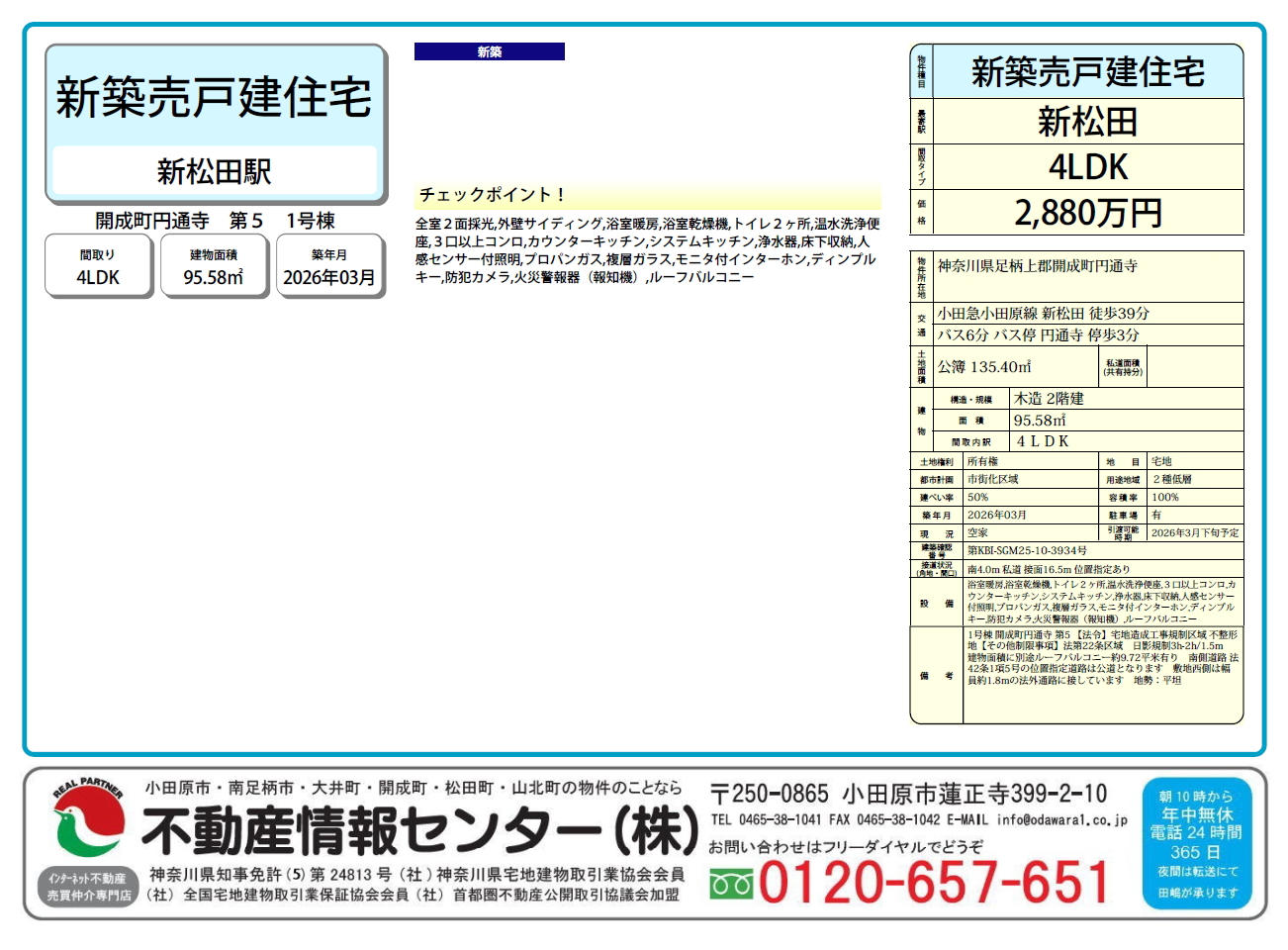 足柄上郡開成町円通寺の閑静な住宅街に、安心と信頼を形にした新築分譲一戸建てが登場いたします。