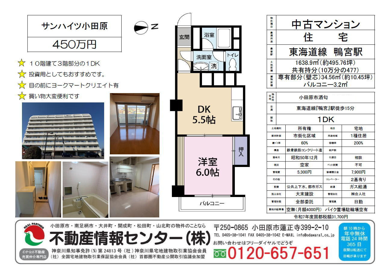 JR東海道線 小田原駅まで バス10分 停歩2分 |