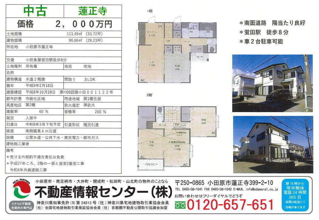 小田原市蓮正寺 中古戸建て 小田急線蛍田駅徒歩10分以内