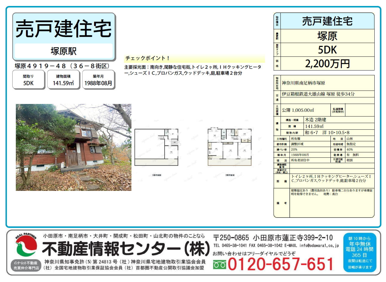 建物は1988年8月築・5DK。各居室にゆとりがあり、ご家族やご友人を招いての滞在や、週末利用のセカンドハウスとしてもおすすめです。