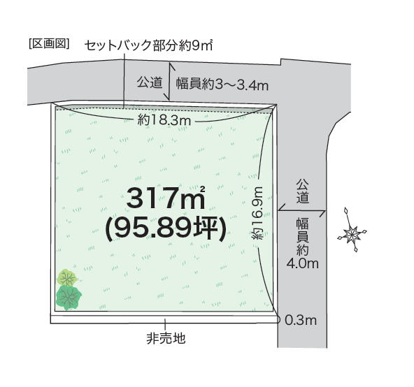 | 接道 | 東 4m(幅員) 公道 16.9m(接面) 北 3.4m(幅員) 公道 18.3m(接面) |