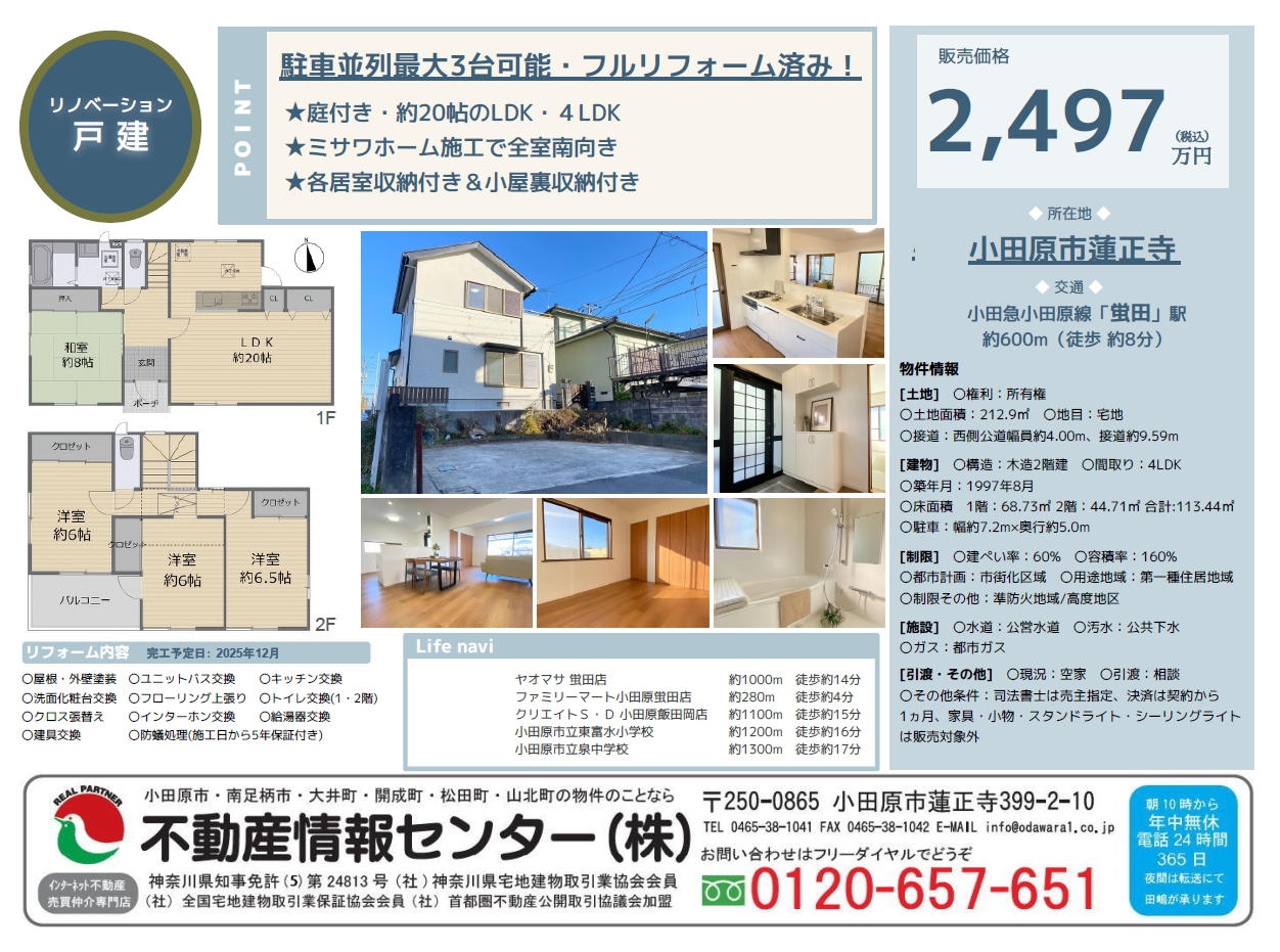 51111:中古戸建 フルリフォーム住宅|小田原市蓮正寺 ミサワホーム施工の中古戸建て
