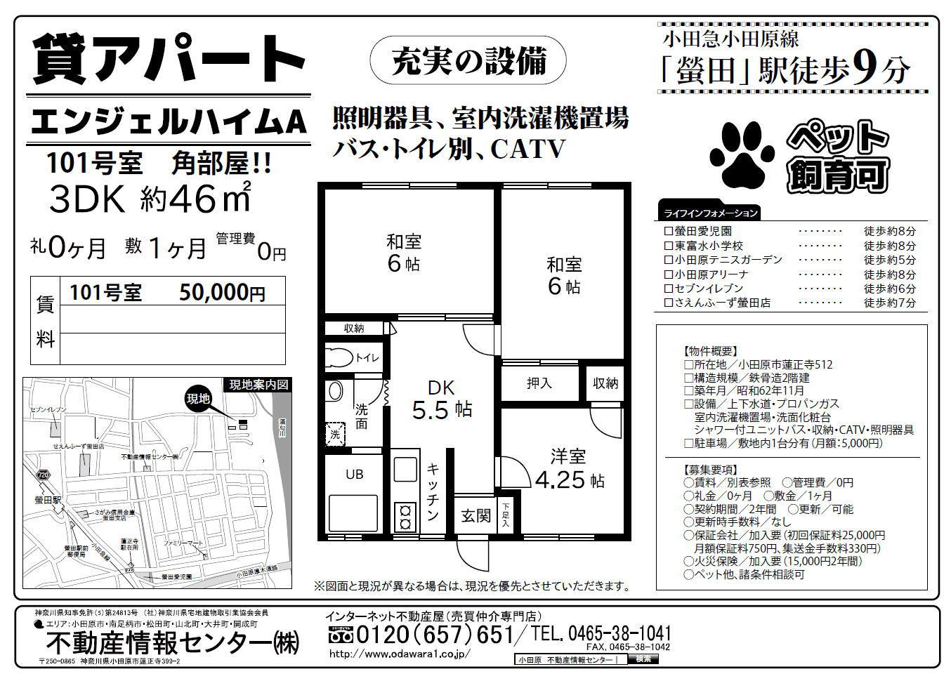 【賃貸アパート 小田原市蓮正寺 エンジェルハイムA101|ペットと暮らせる×3DK】5万円で叶える陽当たりの良い暮らし