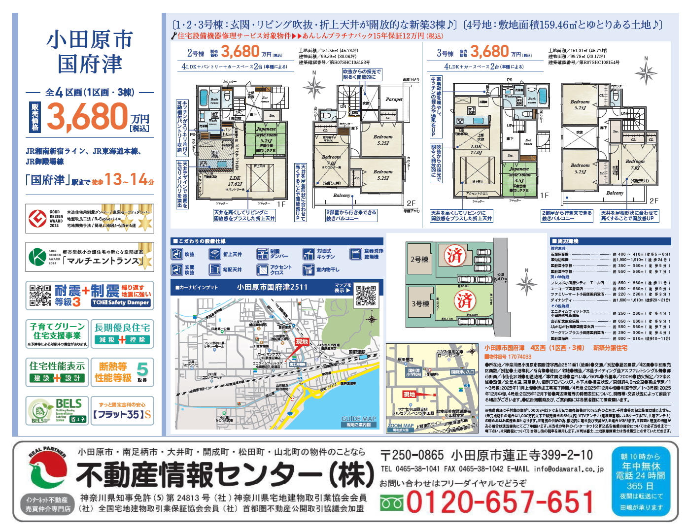 コメント | 開放感あふれる新築住宅が誕生||長期優良住宅×住宅性能評価取得済みで、安心・快適な暮らしを実現|| JR東海道線・御殿場線「国府津」駅から徒歩13分、利便性と快適性を兼ね備えた小田原市国府津の新築一戸建て住宅が誕生しました。 建設・設計において住宅性能評価を取得済みで、耐震性・断熱性・省エネ性に優れた設計がなされており、さらに税制面での優遇が受けられる長期優良住宅の認定も取得済みです。 住宅ローン控除や固定資産税の軽減など、将来的なメリットも大きく、安心して長く暮らしていただける仕様となっています。 家族が集まるリビングには吹き抜けを採用し、明るく開放的な空間でくつろげます。キッチンには勝手口が完備され、ゴミを置いておいたり、捨てに行く際にとても便利です。 折上天井による高さのある室内は、視覚的にも広がりを感じられ、自然光を高い位置から効果的に取り込むことで、日中でも照明に頼らず明るい住環境を実現しています。 また、雨の日や花粉が気になる季節には室内物干しが活躍し、天候に左右されない洗濯環境を整えています。立地面では、車で約2分の場所に西湘バイパスがあり、通勤や週末のレジャーにも便利なアクセスを誇ります。 さらに、約130m(徒歩2分)の距離にスーパーやホームセンター、飲食店が軒を連ねる巡礼街道があり、毎日の買い物にも困らない生活利便性の高い環境が整っています。 国道1号線までも約450m(徒歩6分)と近く、車での移動もスムーズです。加えて、徒歩8分(約600m)の場所には山近記念総合病院があり、急な体調不良やケガなどにも迅速に対応できる医療体制が整っていることも安心材料のひとつです。 このように、快適な住空間と優れた住宅性能、さらに生活利便性や医療環境もそろったこの新築一戸建ては、日々の暮らしに安心と豊かさをもたらしてくれる理想の住まいといえるでしょう。 |