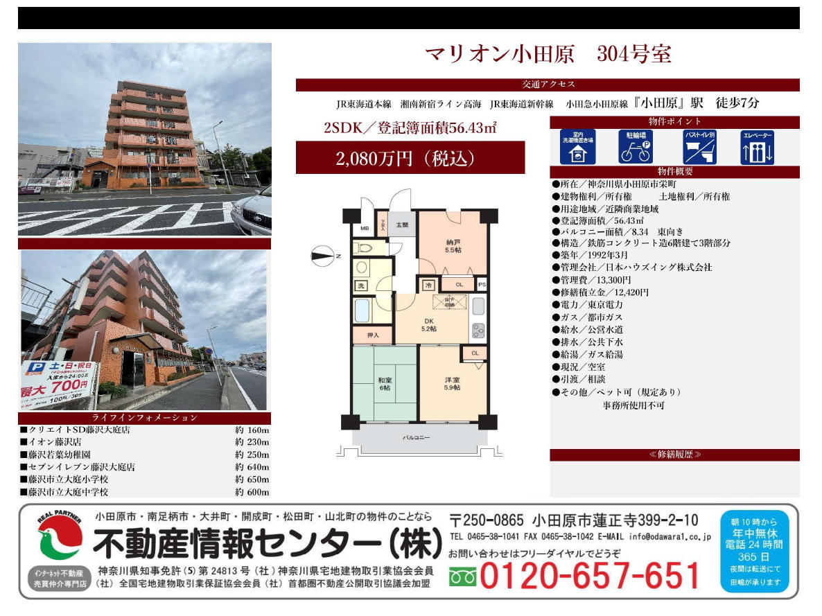 4路線利用可能な「小田原」駅より徒歩8分、通勤・通学に便利な立地に位置する分譲マンション「マリオン小田原」3階のお部屋です。周辺にはスーパーやコンビニ、飲食店、医療施設などが充実しており、毎日の生活に困ることはありません。 室内は広々とした18帖のLDKが魅力的で、ゆとりある住空間を実現。東向きバルコニーで朝の陽ざしがたっぷり差し込み、快適な朝時間をお過ごしいただけます。 1992年築ながら、2018年にリフォーム履歴があり、室内は丁寧に使われていて清潔感があります。 ペットの飼育も可能で、大切なご家族と一緒に新しい暮らしをスタートできます。都市機能と自然環境のバランスが取れた、小田原市栄町エリアで快適な新生活を始めませんか?