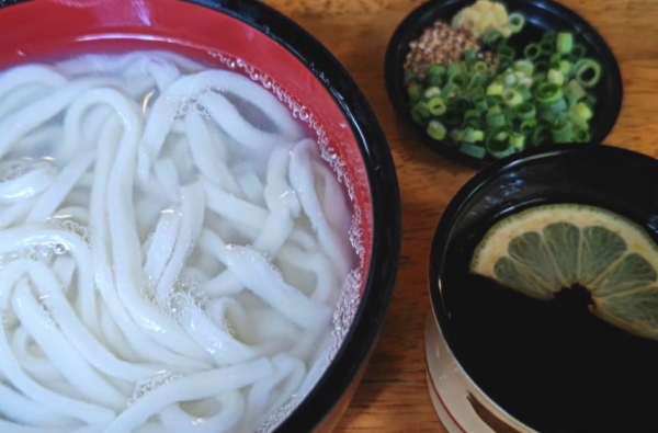 行儀が悪いと思いつつも、他のお客さんの注文もちらりちらりとリサーチしてみました。「カレーうどん」が多く出ていましたね。次に来店するときはそちらも試してみたい・・・でもレモン入りのつゆを堪能したいからきっといつもの「湯うどん」を食べちゃう・・・。