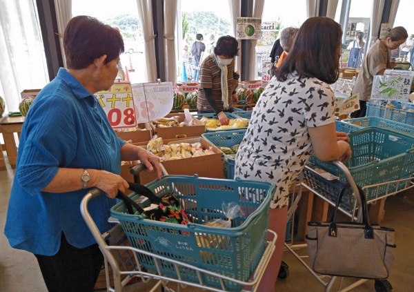 まずは道の駅では定番の地産地消マルシェ!外観からも思いましたが、これがなかなか大きい。入ってみると天井が高くて開放感があります。雰囲気はちょっと工場っぽさもありますね。さて、千葉県特産と言えばピーナッツですが、この時は夏真っ盛りの8月半ば。お盆が真っ盛りというタイミングでもあり、葡萄と梨がわんさかありました。梨はでっかく、葡萄も一つ一つの実が大きく、どれもこれも美味しそう。とはいえ時期が時期なのでなかなかのお値段。大きい分スーパーで買うよりは断然お得なのですが、少し勇気のいるお値段です。大人になって、フルーツってそもそもが高級な品なんだなぁとしみじみ思う事が多くなりました。庶民の味方と思っていた蜜柑も年々価格が上がっていきますので・・・。などと思案していると、祖母が梨も葡萄もぽいぽいかごへ入れていきます。「おばあちゃん年金出たばっかだから!好きなもんなんでもかご入れなさい!」と言われてしまい、孫は・・・孫の私は・・・喜んで大きな梨をかごに入れました。なんならご当地限定のちょっとお高いコーヒー豆まで入れました(許可は取りました)なお、母はもっと色々入れていました。時として、気兼ねなく甘えるのもまた孫の役目だと私は信じています。(レジでは薄目になっていました)